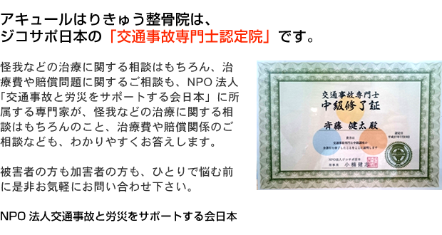 アキュールはりきゅう整骨院では、自賠責保険を取り扱っております。