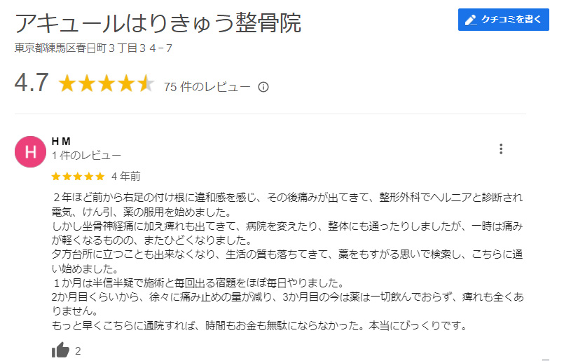 当院の施術効果が高い秘密はアフターフォローがしっかりしているところです。